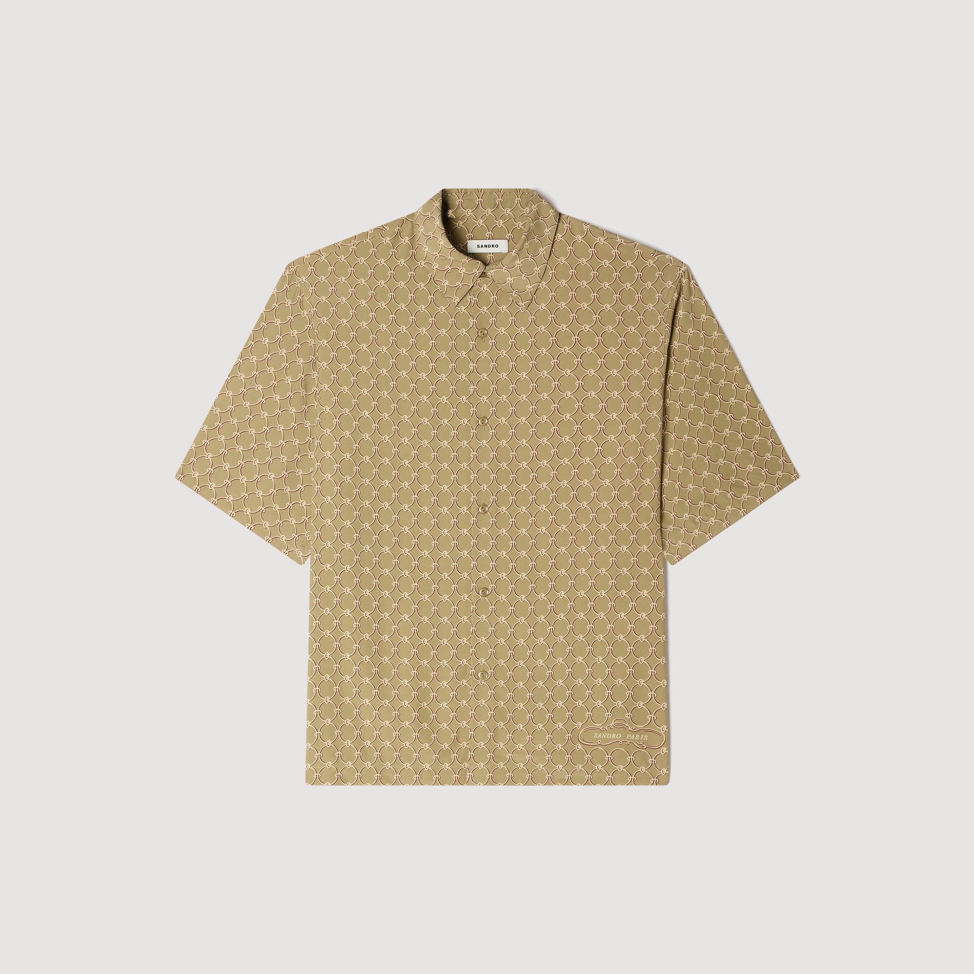 Loose-fit shirt with link pattern, featuring a wing collar, short sleeves and button fastening.