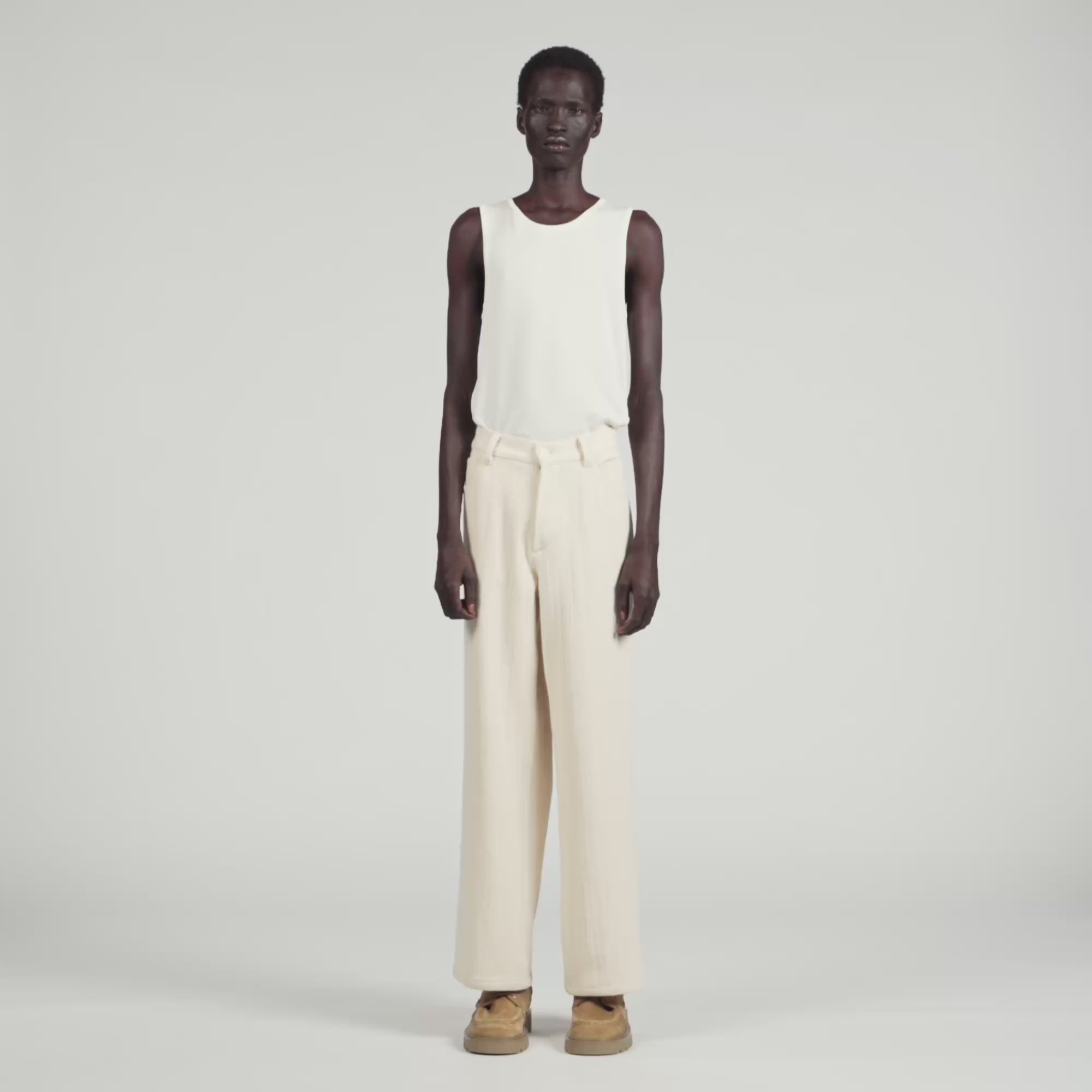 Balloon Pant Worker Wide-Leg Cotton Trousers Ecru